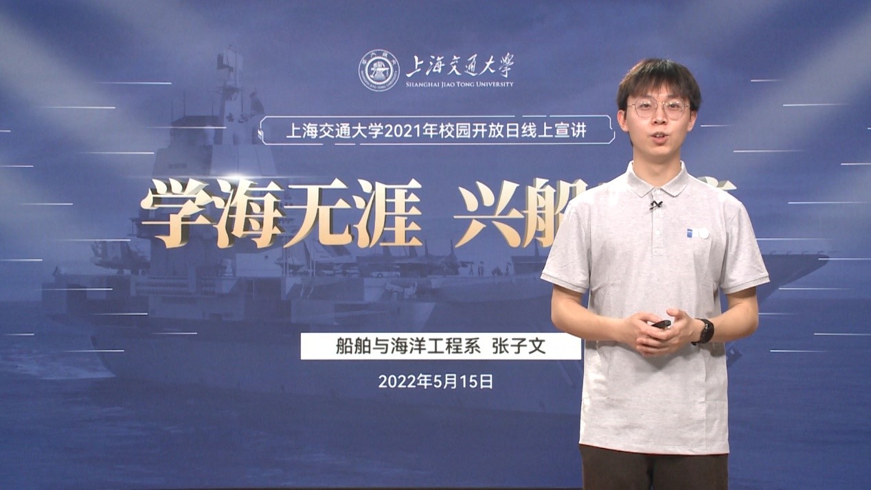 5月15日,上海交通大学2022年校园开放日暨本科招生咨询会通过在线直播的方式顺利举办,中国教育在线直播平台、学校官方微博、bilibili直播平台、抖音、快手等新媒体平台同步直播。江苏招生组组长、船建学院副院长杨健,优秀江苏籍学子、致远博士荣誉计划船舶与海洋工程专业博士生张子文进行宣讲,江苏招生组成员梁晴雪主持咨询会。