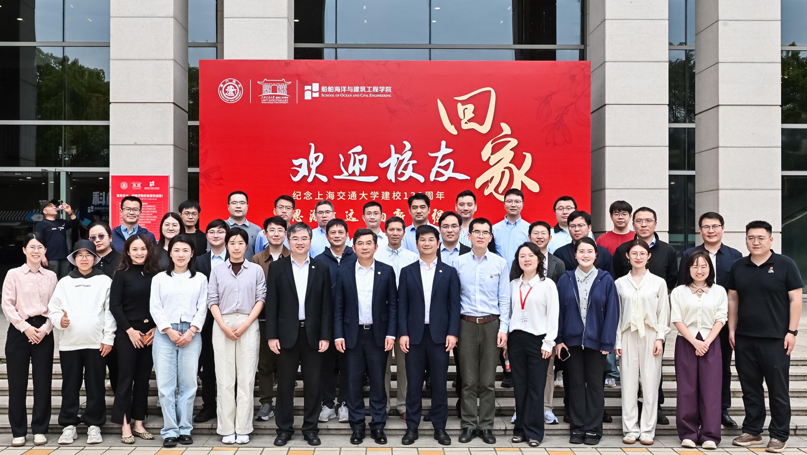 4月6日,时值上海交通大学建校130周年校友返校日,船舶海洋与建筑工程学院交通运输工程系校友座谈会在闵行校区木兰船建大楼顺利召开。来自政府部门、高等院校、规划设计、研究咨询、港口航运、低空经济等领域的二十余位校友受邀重返母校,与在校师生代表齐聚一堂,共庆母校百卅华诞,共话学科发展。校长助理、交通运输工程系教授胡昊主持座谈会。