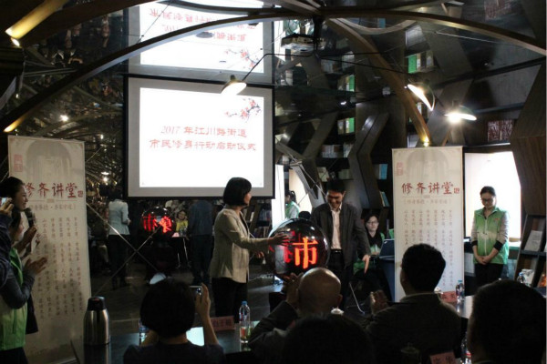4月22日下午,“修齐讲堂”江川路街道第二讲暨江川街道市民修身行动启动仪式在闵行区钟书阁书店举办。主讲人、知名编辑白子超与船舶海洋与建筑工程学院低年级入党积极分子进行了亲切互动。东方网总裁徐世平、上海出版协会理事长胡国强、闵行区委宣传部副部长主亦、江川街道党工委书记王文辉等出席活动。